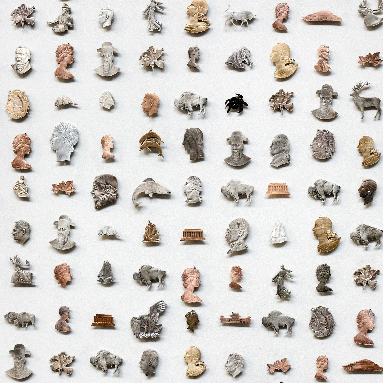 The Coin Collection Series is a collection of imagery found on coins from around the world and grouped together by individual categories. Categories include Flora, Fauna, Birds, Boats, Women, Men and Crests. The series highlights coins being classic collector items while utilizing aesthetic imagery as the basis for the collection.